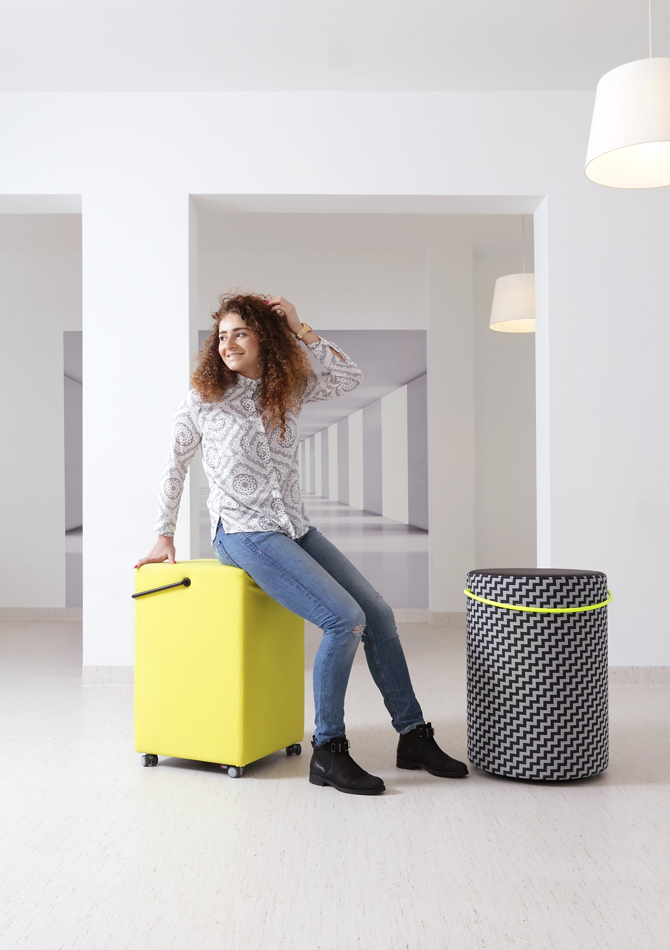 The pouf is distinguished by its strong and simultaneously light construction and durable feet made of full aluminium with ABS protection preventing scratches on the floor.