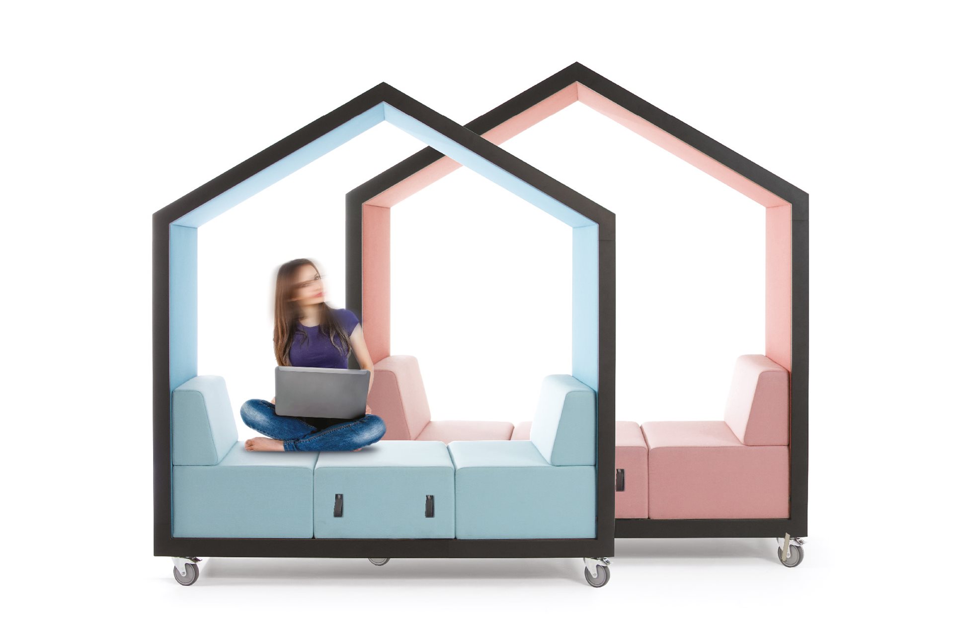 Treehouse was developed with the intention of creating a climate like in a child’s play: warm, cozy, safe and at the same time very functional. Its simple but sophisticated aesthetic qualities were the basis for the lines and surfaces which were developed by us with attention to every detail. Owing to its wide range of fabrics and two kinds of wood, the product can be arranged according to customers’ preferences. The essential features of Treehouse are its modularity and mobility. Owing to the installed wheels, the product, despite its size, may easily be moved. It is especially designed for office work. Depending on your needs, it offers you a lot of solutions. It can be joined together at improvised meetings, creating a team work atmosphere, or stand individually, to ensure its user a feeling of privacy, making contemplation and concentration easier. It can also serve as an impressive partition wall separating big public spaces. The whole concept of Treehouse, its cohesion and harmony will impress everyone.